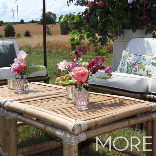Our new stunning bamboo furniture is hand-woven from natural rattan, giving your event space a warm and calm feeling; perfect for a bohemian event theme. Natural textures such as wicker, cane, bamboo & rattan are increasingly popular materials being used throughout event design as the bohemian trend grows. To create a laidback-boho chillout area, use or bamboo square coffee table with our bamboo bench and sofas, Moroccan pouffes, rattan lampshades & traditional rugs.