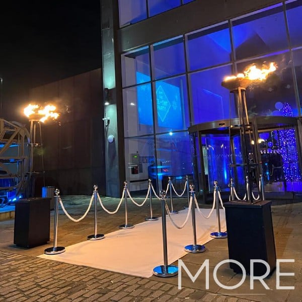 Our chrome entrance posts are available to dry hire or be installed by our creative team. Please feel free to get in touch today to discuss installation options in further detail.
