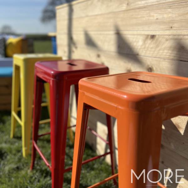 Our Tolix Stools look at their best when paired with our other colours furniture, such as our colours poseur tables and bars.